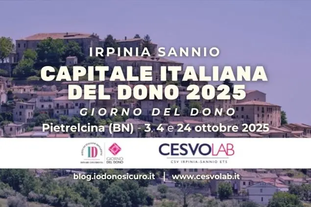La regione italiana con la quota più elevata di donatori (22,6%) in rapporto alla totalità dei residenti è il Trentino Alto Adige. La capitale italiana del dono 2025 è Irpinia Sannio (provincia di Avellino): qui gli eventi del Giorno del dono saranno realizzate in collaborazione con il CESVOLAB - CSV Irpinia Sannio ETS dal 3 fino al 24 ottobre. Il calendario prevede visite guidate, laboratori e percorsi didattici per studenti e famiglie (2 ottobre), la premiazione dei contest nazionali #DonareMiDona Scuole con ospiti del mondo della cultura e dello spettacolo, tra cui Geronimo Stilton, esibizioni e spettacoli musicali (3 ottobre), la raccolta sangue promossa da Fratres Campania (4 ottobre) e, per concludere, una grande giornata di restituzione e testimonianze con i protagonisti del dono (24 ottobre).Tutte le informazioni su #DonoDay2025 sono disponibili su www.giornodeldono.org - www.istitutoitalianodonazione.it - https://blog.iodonosicuro.it/ - https://cesvolab.it/