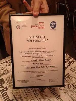 Oggi in Italia, quasi l’80% dei videopoker si trova nei bar e nelle tabaccherie. Se n’è accorta anche l’associazione “Per il Policlinico Onlus”, la cui presidente Claudia Buccellati ha partecipato alla consegna dell’attestato al “Bar Man Bar” “per contribuire ad accendere i riflettori su una piaga che ormai ha assunto i contorni di una vera e propria patologia”.