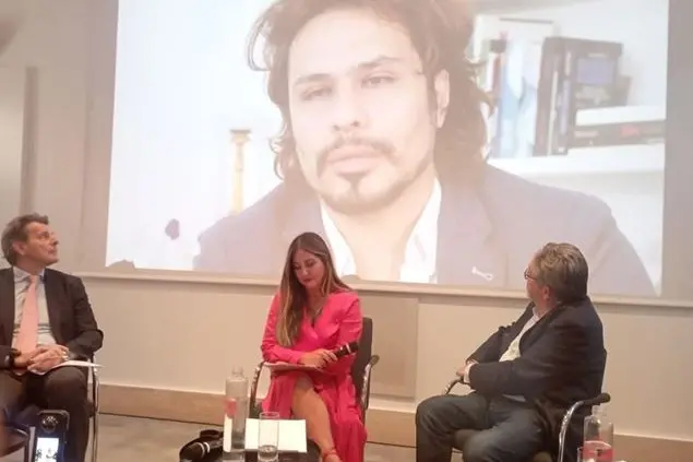 (Nella foto, al centro Clementina Speranza durante l'incontro su cinema e diritti umani all'Ambasciata svizzera in Italia. Nel video alle sue spalle Babak Monazzami)