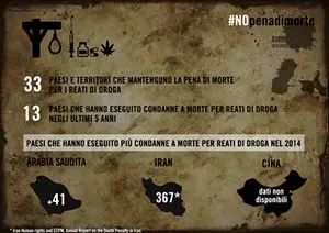 La Coalizione mondiale contro la pena di morte, di cui Amnesty è parte, ne ha più volte stigmatizzato l’uso per i reati di droga, che in 33 paesi del mondo sono puniti con sentenza capitale. Nel 2014 ci sono state circa 600 esecuzioni legate agli stupefacenti in almeno dieci nazioni: Arabia Saudita, Cina, Emirati Arabi Uniti, Indonesia, Iran, Malesia, Singapore, Sri Lanka, Thailandia e Vietnam. La “mattanza di Stato” è proseguita nel 2015, anche se i dati disponibili sono ancora parziali: 241 fino al 28 aprile in Iran, 58 nei primi otto mesi in Arabia e 14 in Indonesia, tra cui i sette stranieri per cui l’Australia tentò una mobilitazione internazionale.
