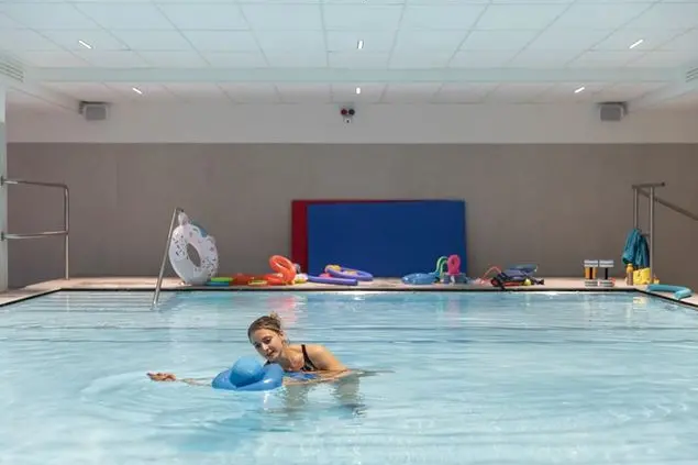 La piscina idroterapica del Centro TOG è uno dei fiori all’occhiello della struttura. Misura 6x9 metri ed è progettata per essere completamente accessibile. Riempita con acqua calda (33°), può contare su una rete di videocamere aeree e subacquee (sistema AngelEye for Therapy) che consentono ai fisioterapisti di effettuare analisi mirate dei progressi di ciascun bambino.
