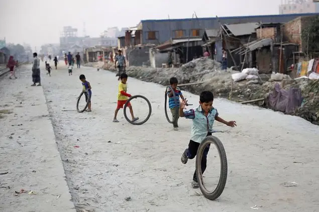 (Foto Reuters: bambini che giocani in una strada di Dhakka, capitale del Bangladesh)