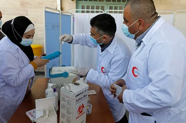 (Foto Reuters: la campagna di vaccinazione degli operatori sanitari a Betlemme, in Cisgiordania).