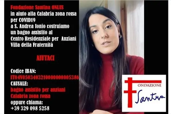 Un aiuto concreto per la Calabria in zona rossa - lacerata dal Covid-19 e dai gravi problemi di una sanità disastrata - in particolare per gli anziani, i più fragili e vulnerabili, prime vittime del virus, che in questa regione rappresentano il 23% della popolazione. La Fondazione Santina Onlus, associazione impegnata in progetti solidali fondata e presieduta da monsignor Luigi Ginami (intitolata alla memoria di sua madre Santina Zucchinelli), ha deciso di contribuire alla lotta all’epidemia in Calabria assumendosi un impegno: finanziare la realizzazione di un bagno assistito per anziani al centro residenziali per anziani Villa della Fraternità Onlus a S. Andrea Ionio (Catanzaro). Si tratta di un locale bagno assistito in cui collocare una vasca con scopo igienico e terapeutico. Il costo dell’opera ammonta a 18mila euro, fino ad ora la Fondazione ha raccolto grazie alle donazioni mille euro: ne mancano ancora 17mila per completare la struttura.