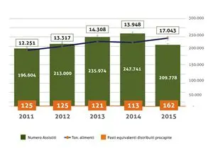 Presentato il bilancio sociale 2015 del Banco Alimentare Lombardia. Aumentano gli indigenti che chiedono aiuto: 5 milioni in Italia. In Regione sono 209mila le persone aiutate ogni giorno di questi 60mila minori. «Sono 585 le aziende che nel 2015 hanno donato alimenti», spiega il presidente Vassena, «compresi quelli destinati ai bambini in età pediatrica che sono tra i più costosi e difficili da reperire»