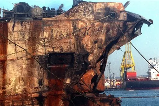 Dalla direzione che io avevo nel momento in cui ho sorvolato la zona diretto all'aereoporto di Pisa, essendo passato a poppa della petroliera verso le secche della Meloria, potrei azzardare di supporre che la prua di questa si trovasse verso SUD-EST».