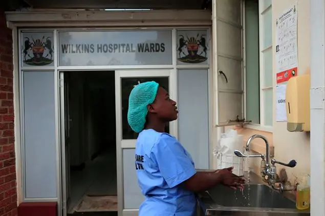 (Foto Reuters/Philimon Bulawayo: un'operatrice sanitaria si lava le mani in un ospedale di Harare, in Zimbabwe)