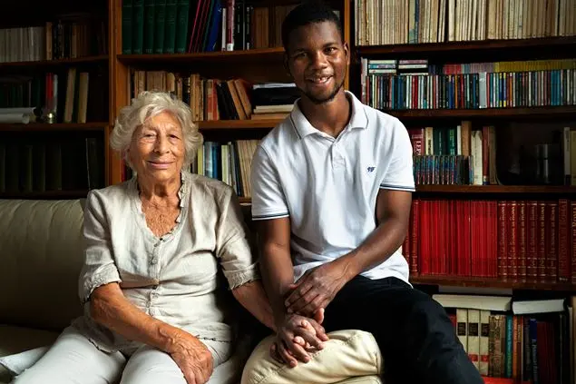 Luciana Pomoli e Abdelaziz Jallow: lei ha 90 anni, vitalità ed energia da vendere, e da più di due decenni gira per le scuole per tramandare ai più giovani le memorie della sua esperienza di staffetta partigiana. Lui di anni ne ha 22, è un giovane rifugiato che arriva dal Gambia. Due vite apparentemente distanti anni luce. Eppure, grazie a Refugees Welcome Italia, si sono incontrate e da alcune settimane vivono sotto lo stesso tetto. Luciana, pensionata e sola, ha aperto ad Aziz (come lo chiama lei abbreviando il nome) le porte della sua casa di Roma, lo ha accolto a braccia aperte, senza remore, senza paura. «La quarantena mi ha fatto capire ancora di più l’importanza di avere una casa, non solo come spazio fisico, ma anche come spazio affettivo», racconta. «Gli ho detto: sei una persona libera, come sono libera io». Per Aziz non è stato subito semplice: quando Refugees Welcome Italia gli ha proposto di andare a vivere in una famiglia lui, confessa, ha avuto paura. «Ma quando ho visto nonna Luciana, ho pensato che questa persona poteva essere compatibile con il mio modo di vivere», racconta Aziz.