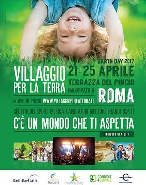 Dallo scorso anno Earth Day Italia (promotore storico dell’iniziativa) organizza il Villaggio per la Terra insieme al Movimento dei Focolari di Roma. L’evento è organizzato in collaborazione con il Ministero dell’Ambiente. La scorsa edizione è stata segnata dall’arrivo a sorpresa di Papa Francesco con il suo forte messaggio ai partecipanti: “Trasformate deserti in foreste”, che ha spinto il Movimento dei Focolari ed Earth Day Italia a dedicare l’edizione di quest’anno al Dialogo Interculturale per la Pace, ponendo così l'accento sull'urgenza assoluta di costruire ponti e abbattere muri, nella convinta ricerca di quell'unità mondiale senza la quale è impossibile rimettere al centro l'uomo e la sua felicità.