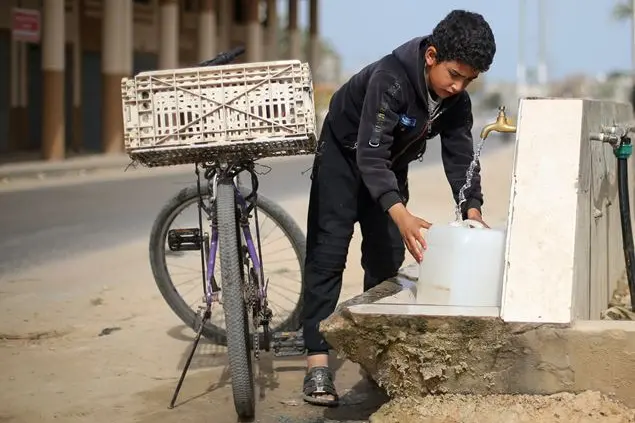 (Foto Reuters sopra: un bambino di Gaza che fa rifornimento di acqua potabile presso un punto di distribuzione pubblico)