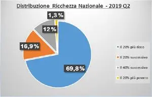 In Italia non va molto meglio. A metà 2019, il 10% più ricco della popolazione deteneva il 53,6% della ricchezza nazionale netta, oltre 6 volte la quota della metà più povera dei nostri connazionali, e la ricchezza dell’1% più facoltoso superava quella complessiva detenuta dal 70% degli italiani più poveri sotto il profilo patrimoniale.