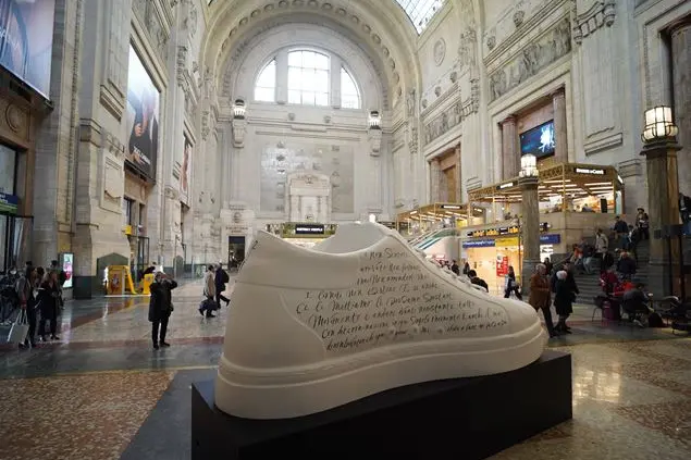 Chi passa in questi giorni dalla Stazione Centrale di Milano può ammirare, nell’atrio monumentale, l’installazione di una sneaker bianca assai fashion e anche molto significativa. L’installazione rappresenta una riproduzione delle SMeakers, presentate per la prima volta alla Milano Fashion Week dell’anno scorso e calligrafate dall’artista Chiara Riva con le storie di Cristina, Federico e Rachele, in rappresentanza delle circa 133mila persone affette da sclerosi multipla in Italia.