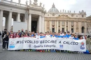 Hanno giocato in piazza San Pietro su tre campi di calcio indossando maglie dove al posto del nome c'erano scritti i valori che contano: onestà, passione, fair play, gioia. Hanno disputato "partitelle" dalle 8,30 alle 12 nei campi disegnati rispettando il luogo, ineguagliabile intreccio di fede, arte e cultura. Erano felici di rincorrere il pallone avendo per sfondo il colonnato del Bernini. Hanno giocato per dire che il calcio è il loro gioco, solidale, inclusivo, sociale e radicato nel territorio, riassumibile in un solo termine "insieme".
