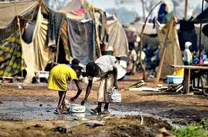 Sabato è stata una giornata quasi calma, che ci ha permesso di organizzare un po' le cose: bisogna occuparsi della sistemazione (in 35 sale della Missione, scuole comprese), dell'igiene, del cibo, della sicurezza. Ma nell'insieme c'è una bella atmosfera. Per i bambini è un po' una gita, mentre gli adulti, al di là dei sorrisi, sono preoccupati.