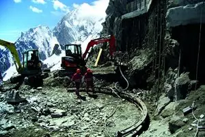 Jean Paul, ribattezzato al cantiere, “Fiocco di neve”, è una delle maestranze super-selezionate per lavorare quassù, alla stazione d’arrivo dell’impianto funiviario. A 3.500 metri d’altitudine non basta avere un mestiere in mano, ma si deve avere la fortuna di possedere un fisico che non patisca il mal d’altura. Jean Paul, come gli altri trenta tra operai e tecnici che lavorano a punta Helbronner, ha dovuto sottoporsi a un severo controllo medico presso l’ambulatorio di Medicina della montagna di Aosta e alla prova dell’ipossia. Perché lavorare a questa quota significa operare in condizioni estreme, con carenza d’ossigeno. Quassù sollevare un sacco di cemento o azionare un martello pneumatico costa il doppio, il triplo della fatica e i tempi di recupero s’allungano.
