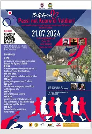 Si tratta di una camminata ludico motoria guidata nel Parco Alpi Marittime a cui seguirà un pasta party, e la presentazione del libro Portami Lassù scritto da Cristina Giordana, la mamma di Luca Borgoni e un concerto finale sulla Terrazza di Villa Bianco. L'obiettivo è racciogliere fondi per supportare l'associazione Battikuore di Boves, fondata da Laura e Rosario Lo Forte, nell'acquisto e installazione di un defibrillatore DAE a Terme di Valdieri. Parteciperanno all' evento la campionessa di sci Stefania Belmondo, Marco Olmo, ultramaratoneta italiano, vincitore di numerosi ultra trail. In collegamento da Cervinia l’alpinista italiano Hervè Barmasse.