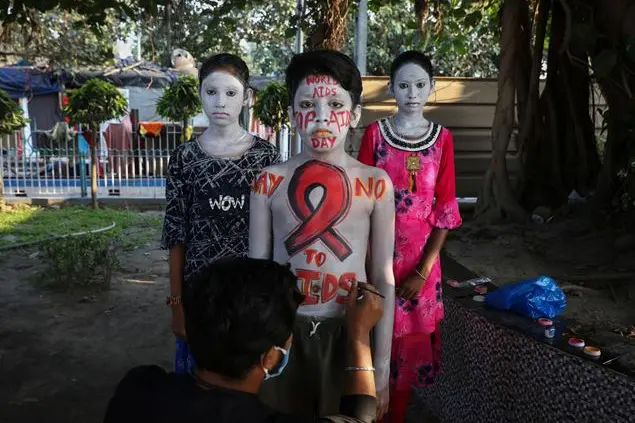 (Foto Reuters: campagna di sensibilizzazione contro l'Aids in India)