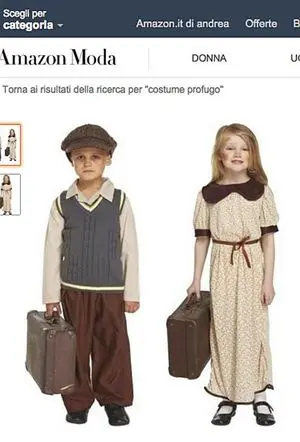 Così in pochissime ore è scomparsa prima la foto dei due bambini vestiti da profughi e poi il link all’azienda inglese.
