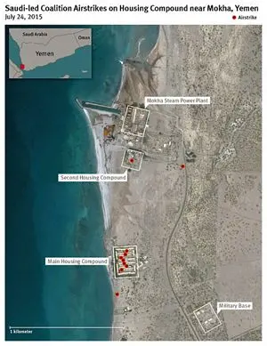 La mattina successiva alla strage, Al-Arabiya TV, di proprietà saudita, ha riferito che le forze della coalizione hanno attaccato una base militare di difesa aerea in Mokha. Human Rights Watch ha individuato una struttura militare a circa 800 metri a sud est del condominio principale di Steam Mokha Power Plant, che ai lavoratori dell'impianto era stato detto fosse una base di difesa aerea militare. Ma gli operai dell'impianto hanno detto che era vuota da mesi, e Human Rights Watch non ha visto alcuna attività o personale alla base dall'esterno, a eccezione di due guardie.
